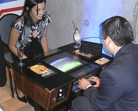 Tradicional mesita de los ochenta la cual se jugaba de a dos. Ambos jugadores estaban sentados a cada lado de una mesa en la cual estaba incorporada la pantalla de juego en el centro. Lo novedoso de esta mesita era que a medida que cada jugador perdía se invertía la pantalla para que continuara jugando el otro player.