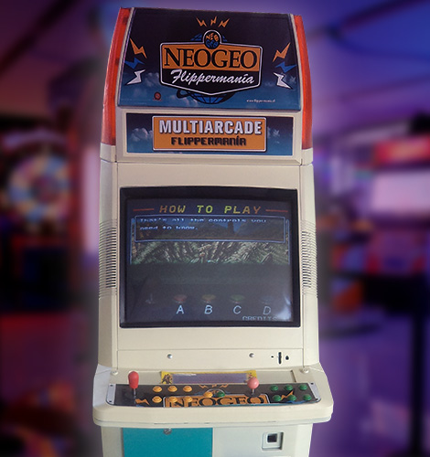 Multiarcade con juegos de lucha y aventura en un mueble acrílico de una línea más moderna con juegos como Snow Bross, Street Fighter y Metal Slug.